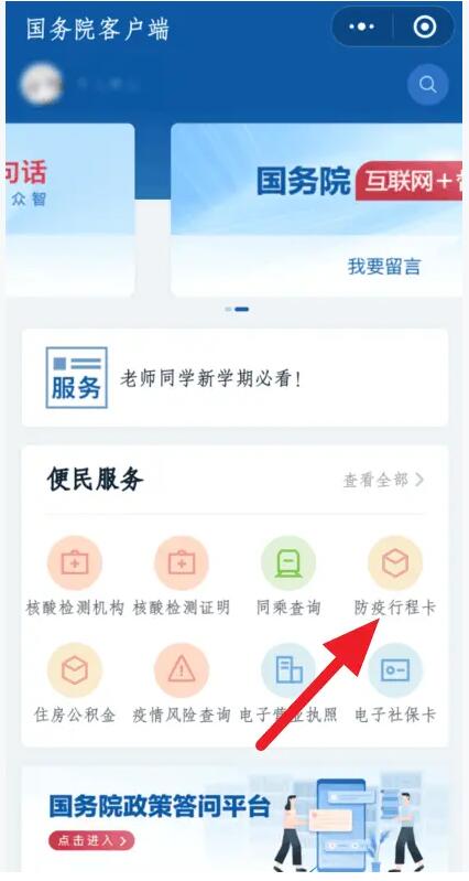 2、然后在打開(kāi)的頁(yè)面中,點(diǎn)擊行程卡。