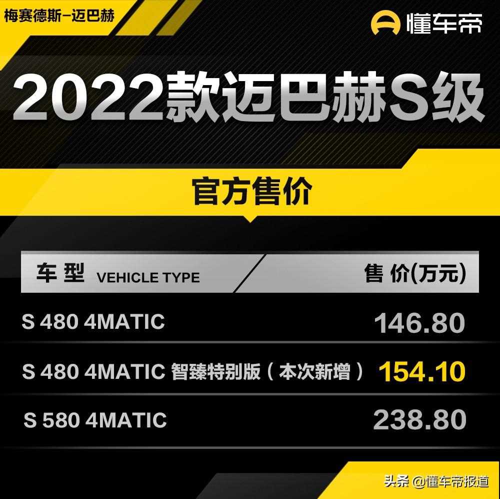 日前,梅賽德斯-邁巴赫宣布,2022款邁巴赫S級新增S 480 4MATIC智臻特別版上市,售價(jià)154.1萬(wàn)元。