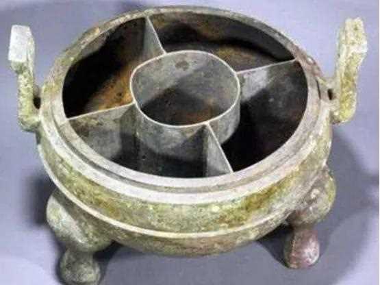 如上圖所示,這是在北京延慶龍慶峽山戎文化遺址中出土的春秋時(shí)期的青銅火鍋,并且有明顯的使用痕跡。