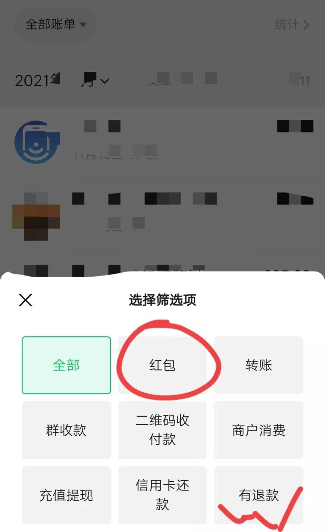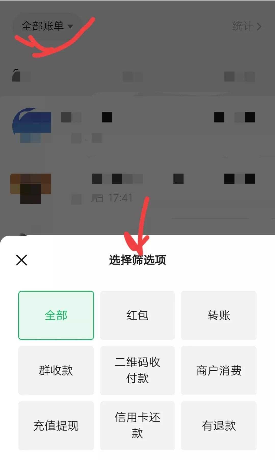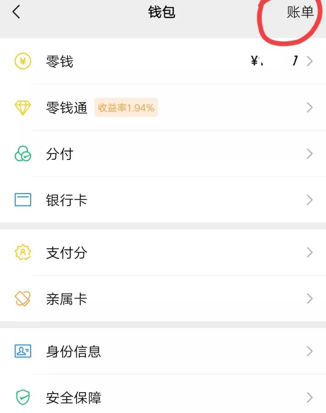 —點(diǎn)擊錢(qián)包—點(diǎn)擊右上角的賬單—然后再點(diǎn)擊左上角的全部賬單