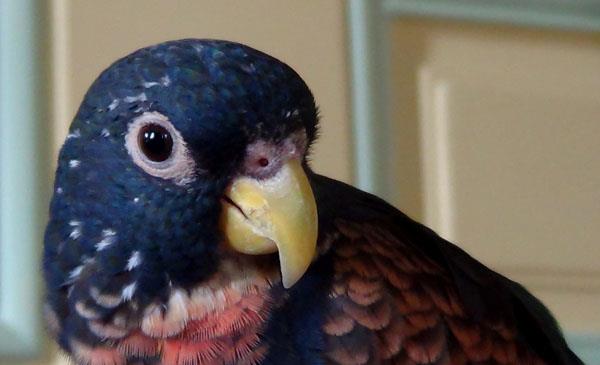 個(gè)性膽小的它們比較容易緊張,另外該物種的呼吸道比較脆弱,很容易感染霉菌所引起的真菌性疾病,若人工養殖,此期間需要多補充維他命A。野外主要以水果、堅果、漿果、種子以及樹(shù)上的花朵為食。人工飼養主要以喂食水果、殼類(lèi)種子、向日葵、綠色植物等。居住要選用堅固的金屬而有足夠空間以供活動(dòng)的烏籠。
