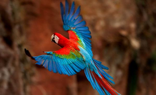 色彩最漂亮、體型最大的鸚鵡之一,面部無(wú)羽毛,布滿(mǎn)了條紋,有點(diǎn)像京劇中的花臉臉譜,興奮時(shí)可變?yōu)榧t色。尾極長(cháng),與黃藍金剛鸚鵡一樣,是友善的鳥(niǎo)類(lèi),即使有一張嚇人的大嘴,也很少主動(dòng)攻擊人。語(yǔ)言模仿能力不強。