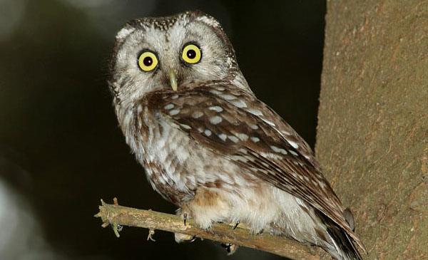 鬼鸮:別名渾斑古_小貓頭鷹,為鸮形目、鴟鸮科、鬼鸮屬鳥(niǎo)類(lèi),原產(chǎn)于亞洲中部、歐洲、北美洲,包括俄羅斯、蒙古、日本、美國和加拿大等地,中國分布于東北黑龍江、甘肅、新疆、四川等地。主要棲息于針葉林和針闊葉混交林,尤其是以松、樺、白楊為主的混交林。1758年命名,共6個(gè)亞種。