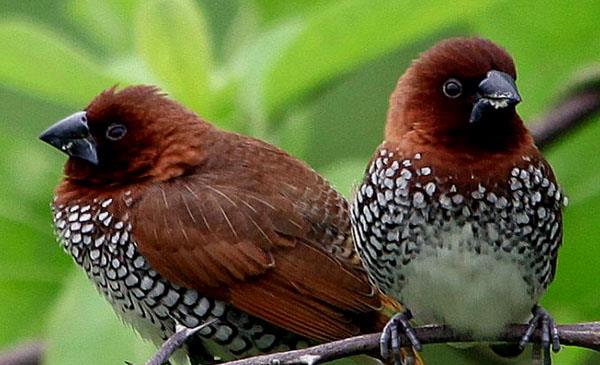 斑文鳥(niǎo):別名麟胸文鳥(niǎo)_小紡織鳥(niǎo)_魚(yú)鱗沉香_花斑銜珠鳥(niǎo),為雀形目、文鳥(niǎo)科、文鳥(niǎo)屬鳥(niǎo)類(lèi),原產(chǎn)于亞洲南部、北美洲南部,包括中國、尼泊爾、印度、孟加拉、不丹、錫金、緬甸、斯里蘭卡、泰國、中南半島、馬來(lái)西亞、印度尼西亞和菲律賓等地。主要棲息于海拔1500米以下的低山、丘陵、山腳和平原地帶的農田、村落、林緣疏林及河谷地區。在中國云南西部地區,也見(jiàn)于海拔2500米左右的田邊灌叢和附近的混交林帶。1758年命名,共11個(gè)亞種。