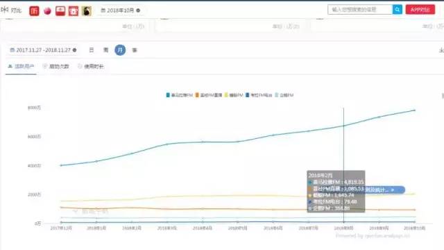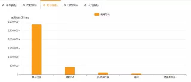 從下圖的QM數據報告也能明顯看出,喜馬拉雅在活躍用戶(hù)規模和用戶(hù)使用時(shí)長(cháng)方面有優(yōu)勢。