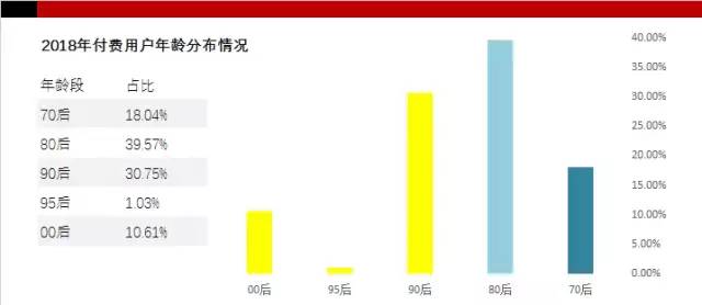 從上圖中的2018年喜馬拉雅付費用戶(hù)年齡分布看,90后(包括95和00后)的年輕人占比超過(guò)43%,90后的付費意愿和付費能力很強。