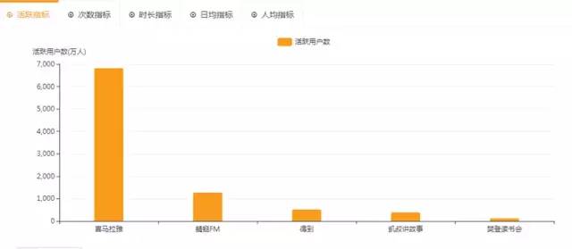 過(guò)去一年半移動(dòng)音頻行業(yè)整體月活增長(cháng)超過(guò) 5000w,其中有 4000w來(lái)自喜馬拉雅的月活增長(cháng)數據,喜馬拉雅的活躍用戶(hù)貢獻占比達80%。