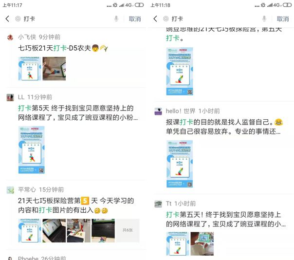 用戶(hù)把低價(jià)課分享到朋友圈,轉化的是對七巧板感興趣的直接付低價(jià)用戶(hù),這些用戶(hù)朋友圈還有大量數學(xué)思維的潛質(zhì)目標用戶(hù),是能被轉化吸納過(guò)來(lái)的。只要讓這些用戶(hù)持續是發(fā)朋友圈為平臺宣傳,那就能把用戶(hù)朋友圈的意向用戶(hù)吃透。因此平臺結合21天的課程設計了打卡就能領(lǐng)DK書(shū)的環(huán)節。