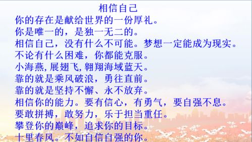 所以我應該靜下心來(lái)仔細想想自己到底想做什么,定位一下自己的人生目標,朝著(zhù)目標勇敢的走下去,不能再這樣浪費時(shí)間。 人生目標不能定得太高,就算有遠大的人生目標,也要從眼前的小目標做起,日積月累才能實(shí)現最終目標。