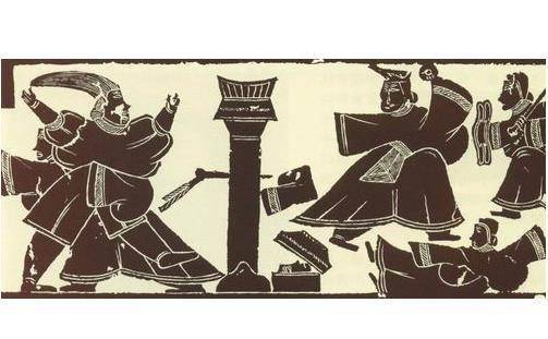韓向俠累府宅護衛森嚴。方時(shí)俠累正高坐府堂,執戟甲士侍立兩旁。聶政仗劍直入韓府,諸多甲士反應不及,正自呆若木偶時(shí),聶政長(cháng)劍已刺入俠累胸膛,俠累頃刻命喪。頓時(shí)府中大亂,甲士們醒悟過(guò)來(lái),齊上圍攻聶政。聶政仗長(cháng)劍擊殺數十人后,難逃重圍,遂倒轉劍柄,以劍尖劃破面頰,剜出雙眼,破腹而死。