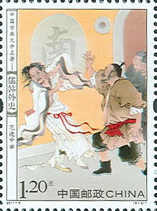 后來(lái),范進(jìn)入京拜見(jiàn)周進(jìn),由周進(jìn)薦引而中了進(jìn)士,被任為山東學(xué)道。范進(jìn)雖然憑著(zhù)八股文發(fā)達了,但他所熟知的不過(guò)是四書(shū)五經(jīng)。