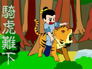 東晉成帝的時(shí)候,大臣溫嶠組織了一支聯(lián)軍去討伐叛亂之徒。在戰爭的初期,有幾路聯(lián)軍連連失利,軍中糧食也快用完了。這種境況很讓主帥陶侃著(zhù)急,他生氣地對溫嶠說(shuō):“你動(dòng)員我來(lái)時(shí),說(shuō)一切都已安排妥當,現在交戰不久,軍糧就快完了,如果不能馬上供應軍糧,我只有撤軍?!?溫嶠對陶侃說(shuō):“自古以來(lái),要想打勝仗,首先得內部團結?,F在我軍雖然乏糧,處境困難,可如果馬上撤軍,不僅會(huì )讓人恥笑我們,而且也會(huì )使叛軍更加囂張。我們目前的處境,正如騎在猛獸的身上,不把猛獸打死,怎么能夠下得來(lái)呢?咱們只有一鼓作氣堅持到底呀!” 陶侃接受了溫嶠的勸說(shuō),率軍奮勇殺敵,終于打敗了叛軍。 溫嶠勸說(shuō)陶侃的“騎猛獸安可下哉”一句話(huà),后來(lái)演變成了成語(yǔ)“騎虎難下”。表示事情發(fā)展到一定程度想要停下來(lái)已經(jīng)不可能,因而騎虎難下也含有進(jìn)退兩難的意思。編輯本段英文