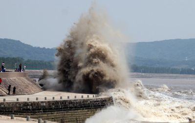 浙江八月何如此,濤如連山噴雪來(lái)?!畎住稒M江詞》2、八月濤聲吼地來(lái),頭高數丈觸山回。