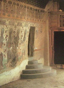 (二) 不是妖艷,不是凄涼, 莫高窟的顏色是渾厚, 因為,它積淀了, 一千多年的風(fēng)沙, 它撐起了一千多年的分量。 朝代的興衰, 歲月的輪回, 生命的存亡, 莫高窟中,有辛酸, 有甜美,有苦澀, 有輝煌,有憤恨…… 這些味道,這些情感, 交織著(zhù),鋪灑著(zhù), 飛揚著(zhù),訴說(shuō)著(zhù), 洋洋灑灑地筑成了一個(gè)莫高窟, 一個(gè)永久的神話(huà)。