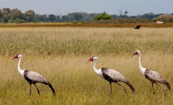 肉垂鶴:別名吐綬鶴,為鶴形目、鶴科、肉垂鶴屬鳥(niǎo)類(lèi),原產(chǎn)于非洲東南部,包括塞俄比亞、坦桑尼亞、莫桑比克、安哥拉、南非等地?,F存數量約6000-8000只。因原生地區的濕地開(kāi)發(fā),導致其棲息地日趨縮小和破碎化,數量呈下降趨勢?,F已被IUCN列為易危物種。全世界有15種鶴,除了南美和南極以外,世界其它大陸都有鶴分布。鶴類(lèi)起源于西半球,然后擴展到亞洲(9種)、非洲(6種)、大洋洲(2種)、北美洲(2種)。