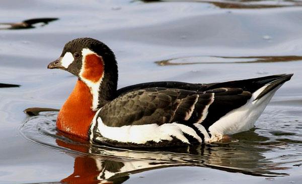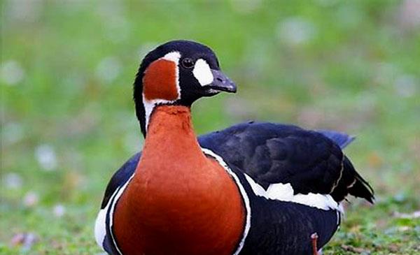 紅胸黑雁:別名,為雁形目、鴨科、黑雁屬鳥(niǎo)類(lèi),原產(chǎn)于歐洲、北美洲、亞洲(中部),我國僅偶爾發(fā)現越冬的迷鳥(niǎo),僅見(jiàn)于湖南洞庭湖。野生于海灣、海港及河口地區。繁殖期在苔蘚和地衣覆蓋的凍原地帶。冬季湖泊、水庫周?chē)貐^越冬。1769年命名。每年9月成群離開(kāi)北極凍原帶繁殖地,遷往歐洲東南部的黑海、里海和咸海等地越冬。遷徙時(shí)常集成大群,白天幾乎不停地飛翔,僅在傍晚才降落到湖泊等水域休息和覓食,常常發(fā)出高叫聲,極為嘈雜。5月成群從越冬地遷往繁殖地,但春季遷徙的群體顯著(zhù)較秋季遷徙的群體為小。