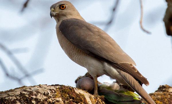 體形比蒼鷹小得多,為小型猛禽,因淡灰褐色耳羽而得名。視覺(jué)敏銳,一旦在空中發(fā)現林間和地面獵物,就以箭般速度撲擊,用利爪抓住獵物再度起飛,到僻靜處撕食。通常很安靜,在繁殖地偶爾發(fā)出似笛聲的kyeew,叫聲短促而清晰,不斷重復不止。