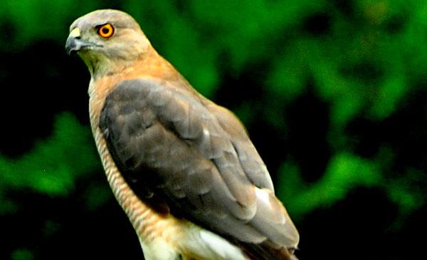 褐耳鷹:別名褐耳蒼鷹_棕耳蒼鷹_褐耳雀鷹,為隼形目、鷹科、鷹屬鳥(niǎo)類(lèi),原產(chǎn)于亞洲、非洲,北美洲、歐洲少部分地區也有分布。非洲至印度地區分布最多。我國廣東、廣西、海南、貴州、云南、新疆、臺灣有分布。野生于山地和平原森林以及在有稀疏樹(shù)木的農田、草地、林緣、稀樹(shù)草坡、開(kāi)闊林區、農田、草原和荒漠地帶,常在林中或林緣河流、湖泊等水邊地帶活動(dòng),有時(shí)也見(jiàn)在公園、果園、村莊、甚至出現在城市的上空。1788年命名,共6個(gè)亞種。我國2級重點(diǎn)保護野生動(dòng)物。