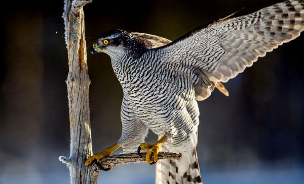 蒼鷹:別名鷹_牙鷹_黃鷹_元鷹,為隼形目、鷹科、鷹屬鳥(niǎo)類(lèi),原產(chǎn)于歐洲、亞洲、北美洲均有廣泛分布,非洲南部部分地區也有分布。野生于疏林、林緣和灌叢地帶,次生林中也較常見(jiàn)。1758年命名,共10個(gè)亞種。性情十分兇猛,有希望捕獲的獵物,都會(huì )毫不猶豫的猛撲過(guò)去。殺死獵物后,用利爪刺穿其胸膛,將其腹部剖開(kāi),先吃掉鮮嫩的心、肝、肺等內臟部分,再將鮮血淋漓的尸體帶回棲息的樹(shù)上撕裂后啄食。在我國主要為夏候鳥(niǎo)和冬候鳥(niǎo)。遷徙時(shí)間春季在3-4月,秋季在10-11月。