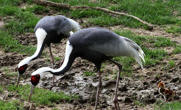 白枕鶴:別名土鶴_紅面鶴_白頂鶴_紅臉鶴,為鶴形目、鶴科、鶴屬鳥(niǎo)類(lèi),原產(chǎn)于亞洲中國(繁殖于黑龍江、吉林、內蒙古,越冬于江西,偶見(jiàn)于福建和臺灣)、俄羅斯貝加爾湖以東繁殖,越冬于朝鮮半島和日本。野生于開(kāi)闊的平原、河流、湖泊、沼澤,有時(shí)出現于農田和海灣地區,尤其是遷徙季節。1811年命名。春季于3月下旬開(kāi)始陸續到達繁殖地,一直持續到4月末。秋季于9-11月離開(kāi)繁殖地遷往越冬地。遷徙時(shí)成家族群或由數個(gè)家族群組成的小群遷飛。2021年列為我國1級重點(diǎn)保護野生動(dòng)物。