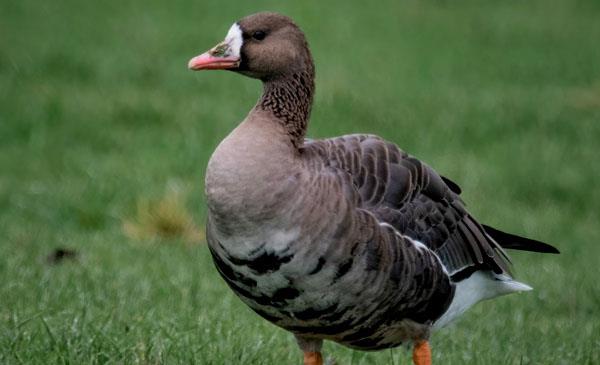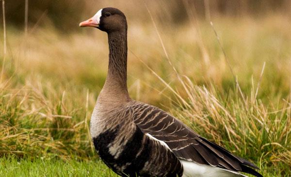 白額雁:別名花斑雁_明斑雁,為雁形目、鴨科、雁屬鳥(niǎo)類(lèi),原產(chǎn)于亞洲、歐洲、北美洲,熱帶亞熱帶地區均有分布。我國黑龍江、哈爾濱、遼寧、內蒙、新疆、西藏及東部沿海地區也有分布。繁殖季節棲息于北極苔原帶的湖泊、水塘、河流、沼澤。冬季棲息于開(kāi)闊的湖泊、水庫、河灣、海岸及其附近開(kāi)闊的平原、草地、沼澤和農田。1769年命名,共5個(gè)亞種。我國為冬候鳥(niǎo),9-10月到達,3月遷離。遷徙主要在晚上進(jìn)行,遷飛時(shí)常單列飛行,邊飛邊叫,叫聲甚高,白天停息下來(lái)覓食和休息。到達越冬地后,分成小群或家族群活動(dòng)。