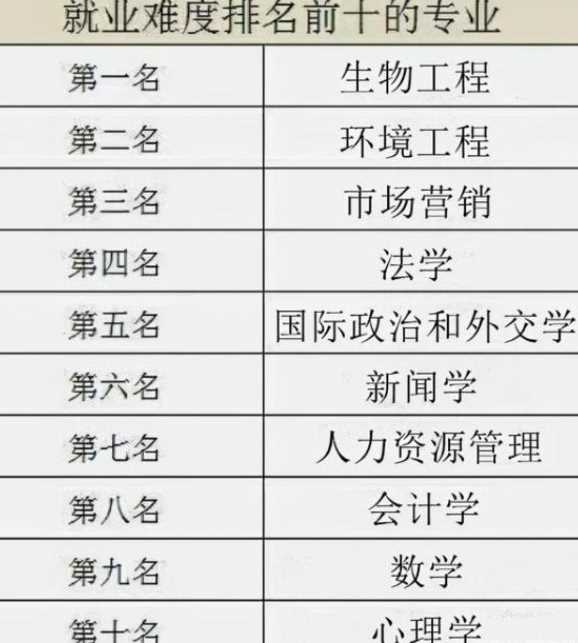 這個(gè)專(zhuān)業(yè)排在第三名,小編猜測應該是現實(shí)跟學(xué)生的預期有很大差距,所以很多人認為市場(chǎng)營(yíng)銷(xiāo)專(zhuān)業(yè)很難找工作。