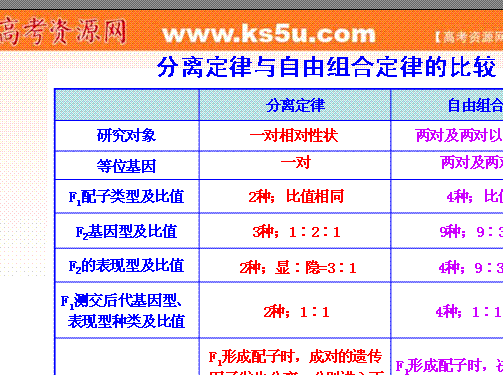 自由組合定律 講的則是 位于不同染色體上的、非等位(不同)基因之間的關(guān)系,本質(zhì)是一對基因中的2個(gè)基因 (A & a)與另一對基因中的2個(gè)基因(B & b)之間,在形成新的子細胞過(guò)程中 是隨機組合的,A可以與B組合 也可與b組合,a也一樣,概率相等,謂之“自由組合”。