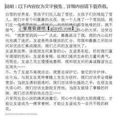在以后幾天,我一直沒(méi)理她友誼是關(guān)心,友誼是互助,友誼是春風(fēng),友誼是暖流,友誼是一個(gè)人進(jìn)步的動(dòng)力。我在與好朋友余凌霄的交往中,品味到了真誠的友誼。